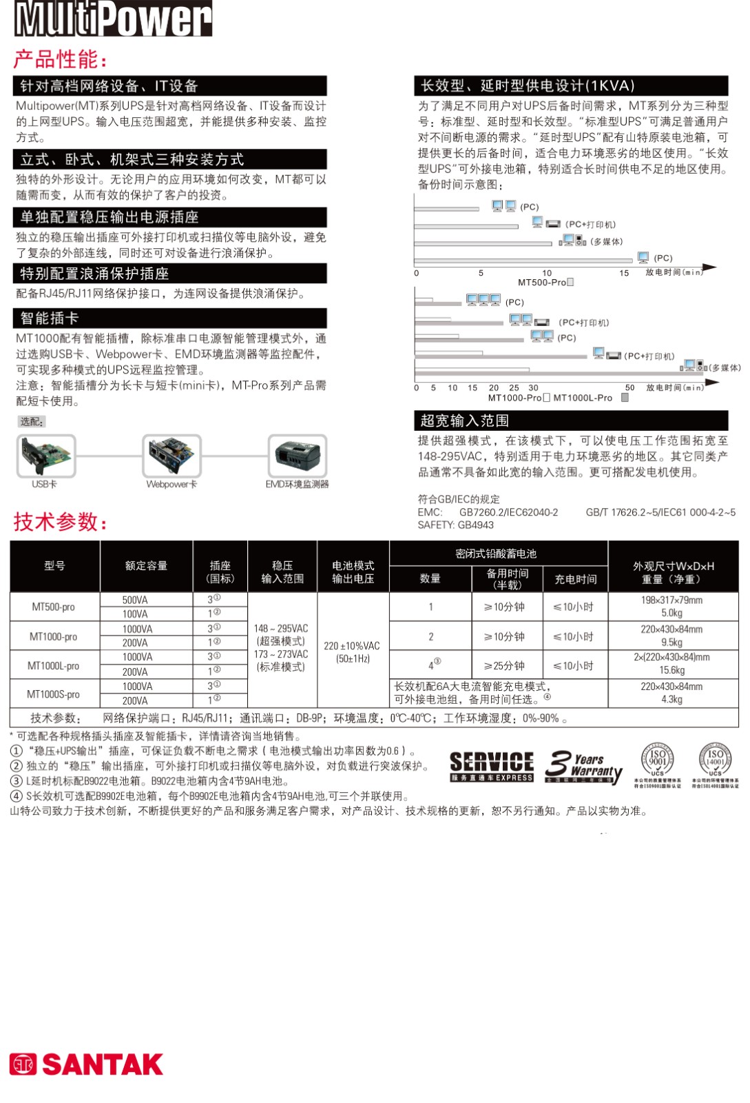 為了滿足不同用戶對UPS后備時間需求, MT系列分為三種型號:標準型、延時型和長效型。